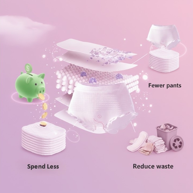 Holds up to 200 ml – one pant is equivalent to 20+ tampons – so you can skip the 2 a.m. pad shuffle.